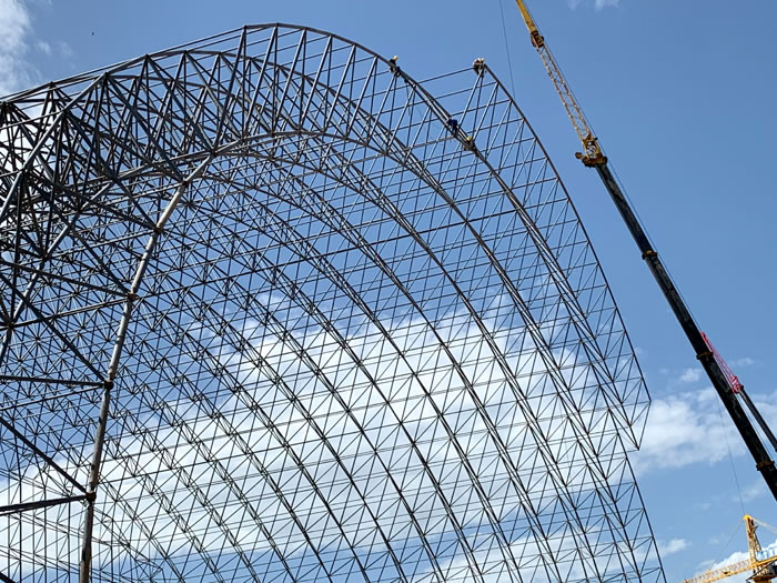 (2)网架加工前应对现场尺寸进行复测,确认无误后方可进行加工、安装;网架制作、运输、安装应遵守《空间网格结构技术规程》JGJ7-2010、《钢网架武汉螺栓球节点》JG/T 10-2009、《钢网架武汉螺栓球节点用高强度螺栓》 GB/T 16939-2016、《武汉钢结构武汉工程武汉施工规范》 GB50755-2012、《武汉钢结构武汉工程武汉施工质量验收标准》 GB50205-2020。